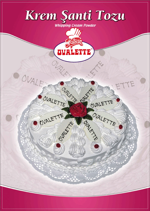 DevamıOVALETTE KREM ŞANTİ TOZU Bitkisel esasta hammaddelerden üretilmiş, su veya süt ile çırpıldığında %300 hacim olarak krem şanti elde edilen toz karışım son derece hijenik bir ürün